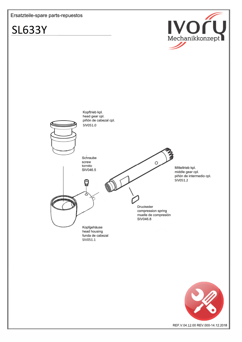 Ivory Head SL633Y spare parts
